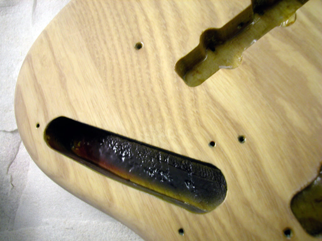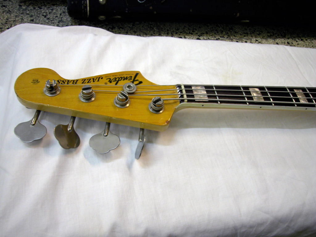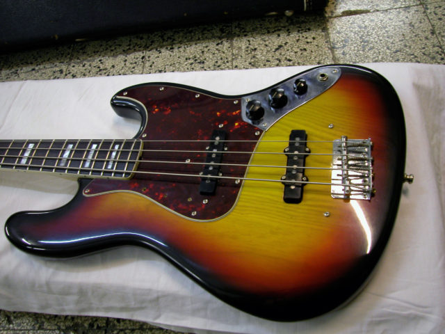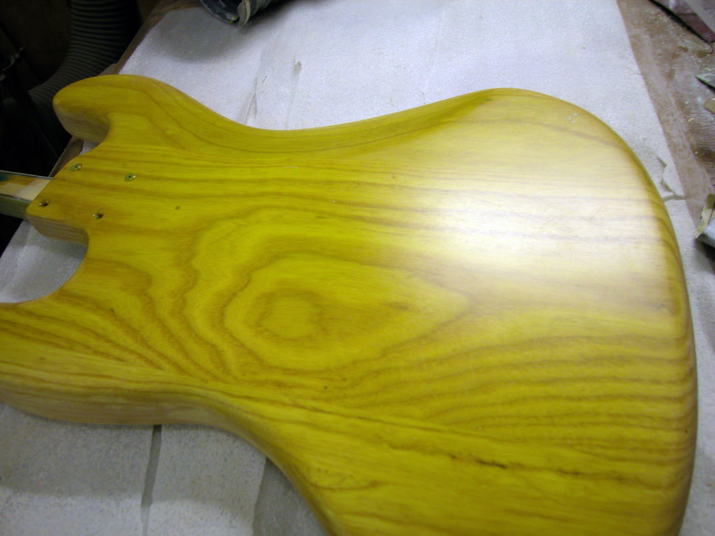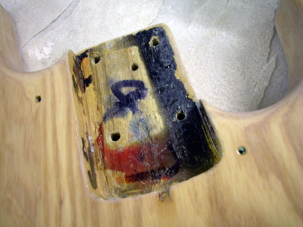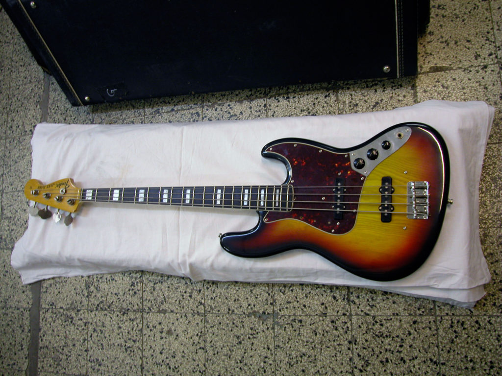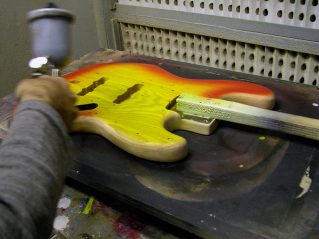 Nel frattempo il corpo era stato ripreparato per una finitura di color sunburst 3 toni tipica di quel periodo. Il colore originale presente negli scassi dei pickups dei controlli e nella tasca del manico è stato conservato e raccordato con la nuova colorazione in modo da ottenere un risultato ottimale.