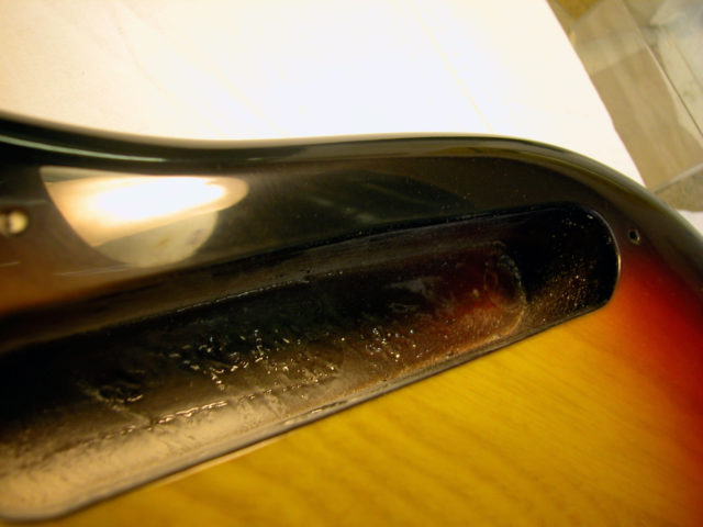 Questo era dovuto al fatto che il binding veniva applicato dopo aver rifilato il bordo dei tasti già piantati e quindi livellando l’eccesso di celluloide con la tastiera si formava questo famoso dentino che è presente anche nelle chitarre Gibson Les Paul.