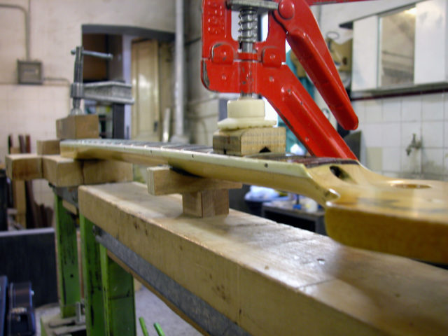 A questo punto bisognava eliminare il difetto al manico che tendeva a curvarsi in avanti mediante bagni di calore allo scopo di rendere perfetta l’azione del truss road.