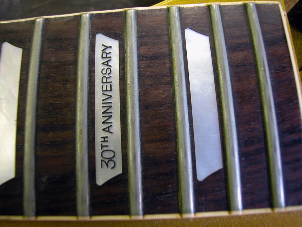Come potete notare su questa Gibson era stato montato un ponte Kaler, lavoro eseguito da un liutaio americano a regola d’arte, che ha firmato il suo operato, non sapendo ovviamente che in un futuro sarebbe stato un “rovinare uno strumento vintage”.