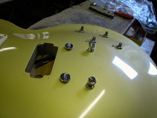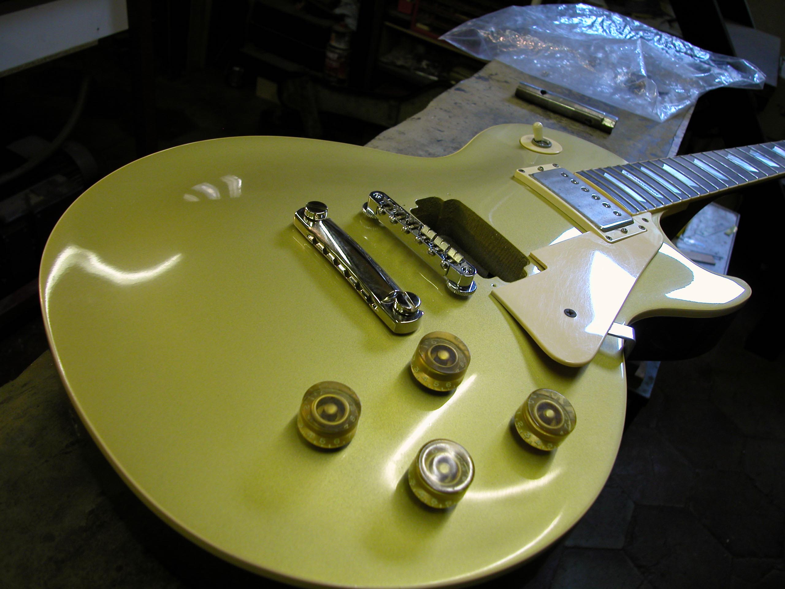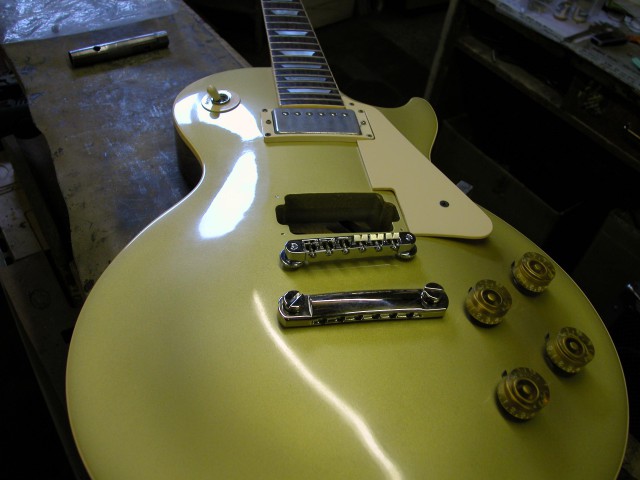 Il cliente voleva riportare lo strumento allo stato originale, conservando fortunatamente l’attaccacorde ed il tune o matic originali. In questo modo il restauro poteva risultare migliore.