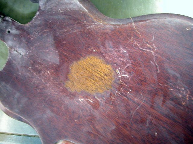 Questo strumento ci è pervenuto con l’attacco del manico rotto e piena di scorticature indecorose.