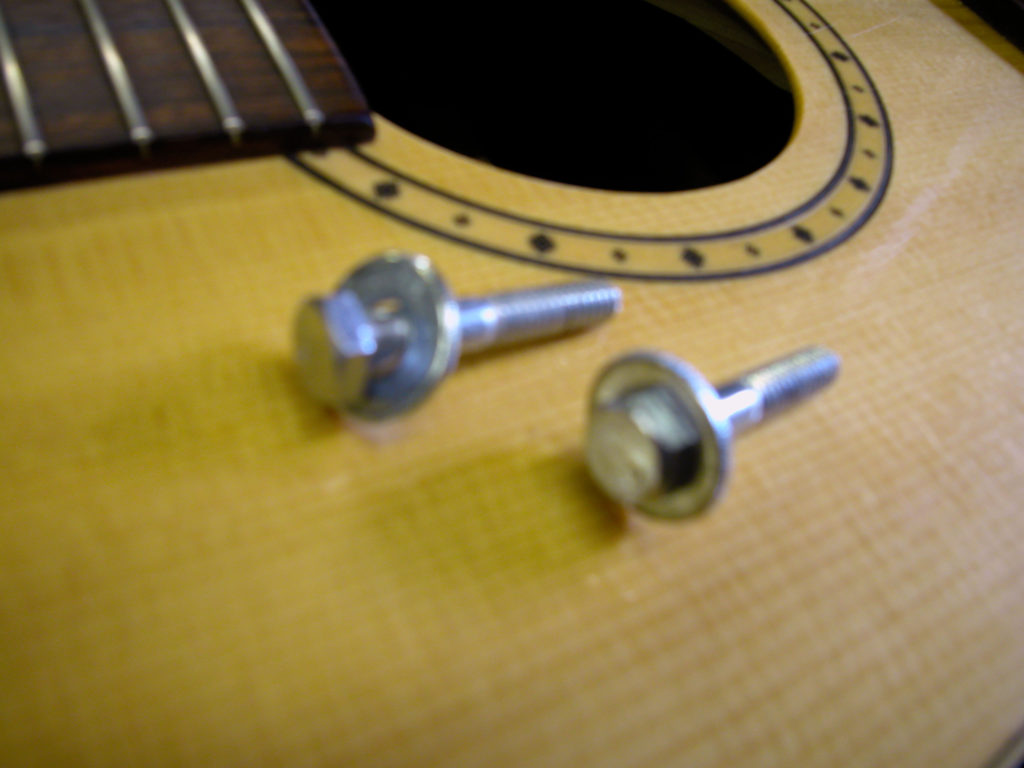 Svitando questi due bulloni risultava molto più semplice scollare completamente il manico compreso di tastiera.
