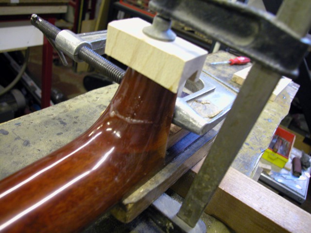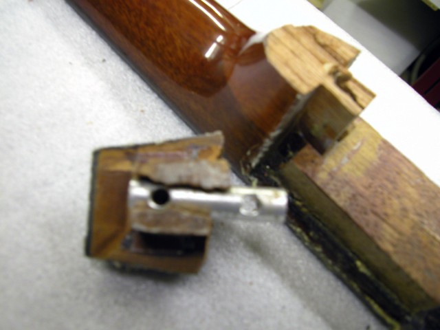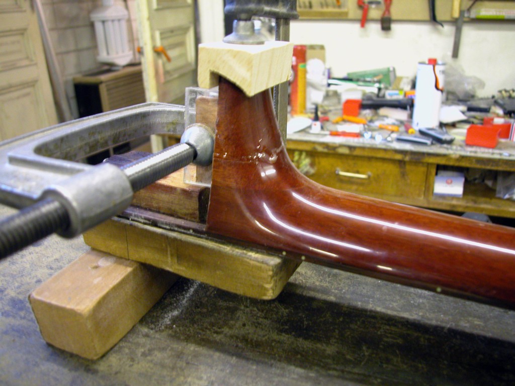 The bonding has been done in a single time because it was needed to glue the missing part of the wedge but also the support containing the metal pawl the hosts the two bolts,to make perfect the connection between neck and body.
