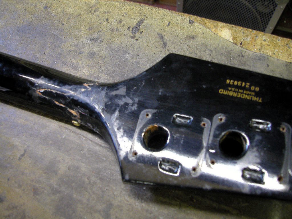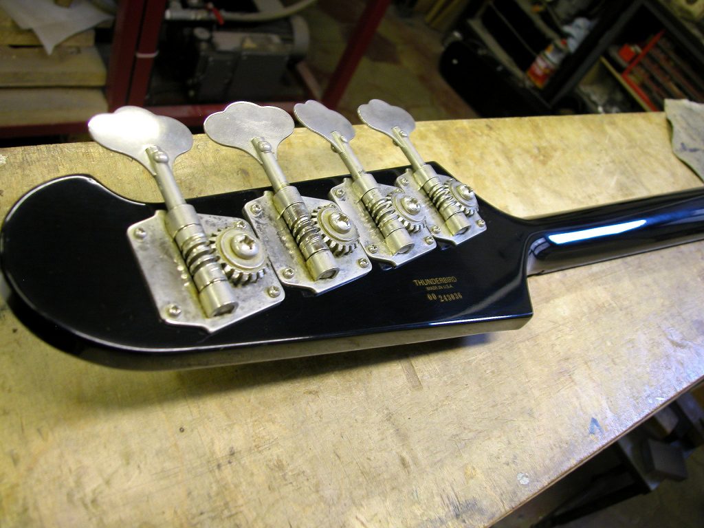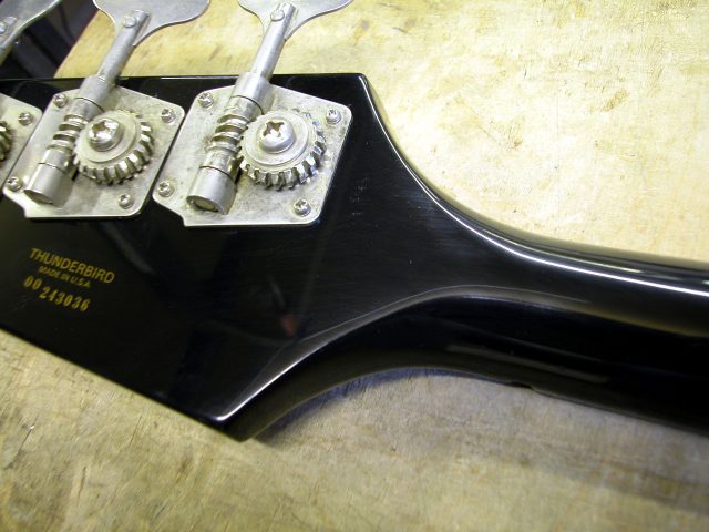 In seguito abbiamo staccato molto accuratamente quel sottile strato di materiale plastico, che forma il tipico bassofondo caratteristico dei bassi Thunderbird e delle chitarre Firebird.