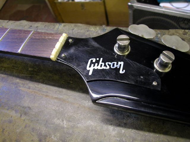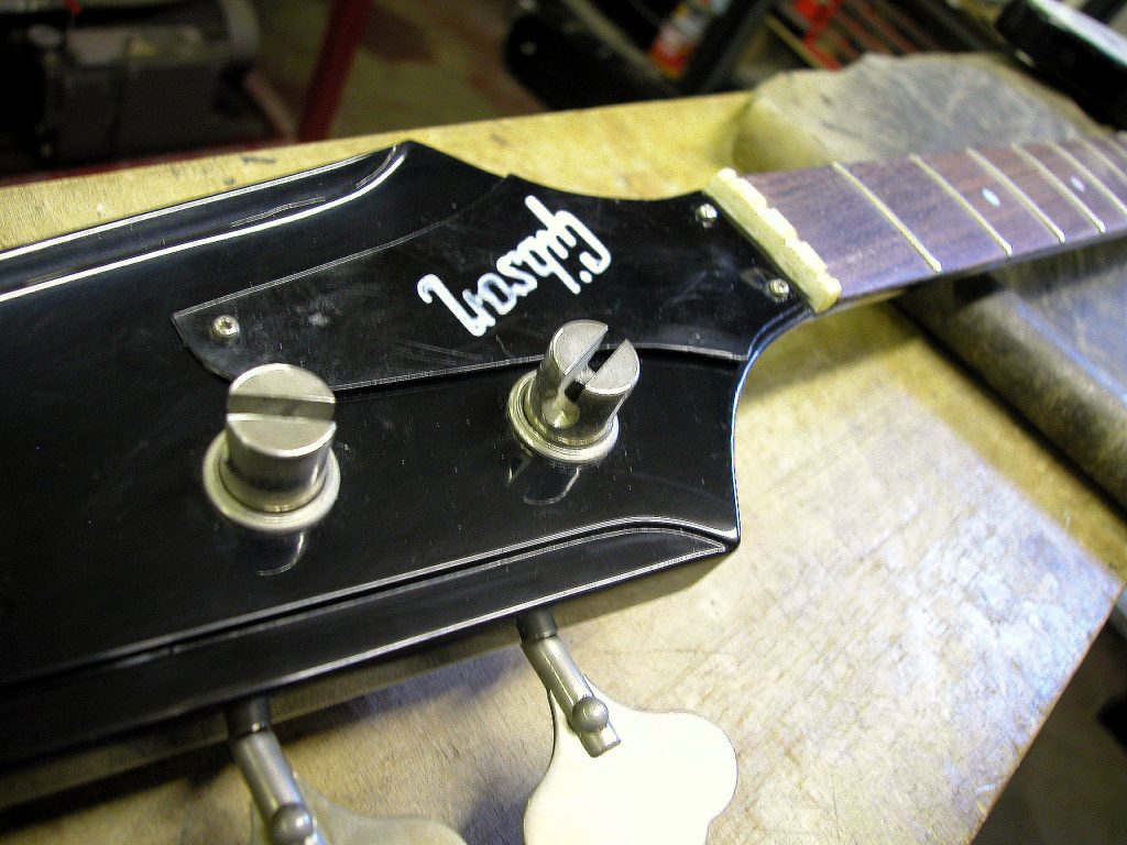 A lavoro svolto, il manico al suo interno era completamente consolidato e quindi non rimaneva che riverniciarlo, con la dovuta accortezza di non coprire, quindi non cancellare il numero di serie sul retro paletta.