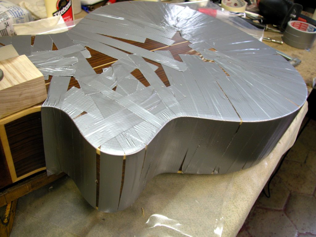 In alternativa alle classiche morse, la nostra idea è stata quella di utilizzare un nastro telato adesivo, ottenendo così, con una giusta e omogenea pressione, un’aderenza uniforme.