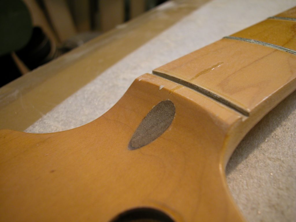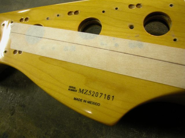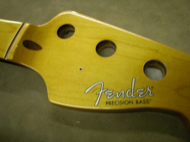 Tutte queste operazioni sono state eseguite evitando di scalfire la verniciatura di colore ambrato per evitare di dover riverniciare completamente il manico specialmente la paletta ove si trova la decal (Fender).