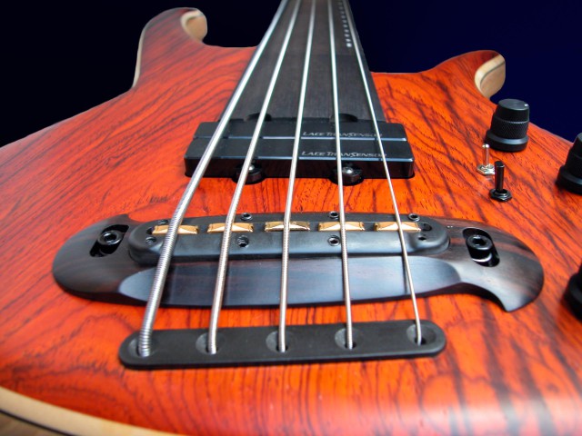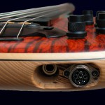 Ponte: in legno realizzato su misura da Mari, con regolazione action e diapason e sellette polifoniche RMC con uscita accoppiata piezo+magnetico e uscita dedicata con pre-RMC per connessione MIDI